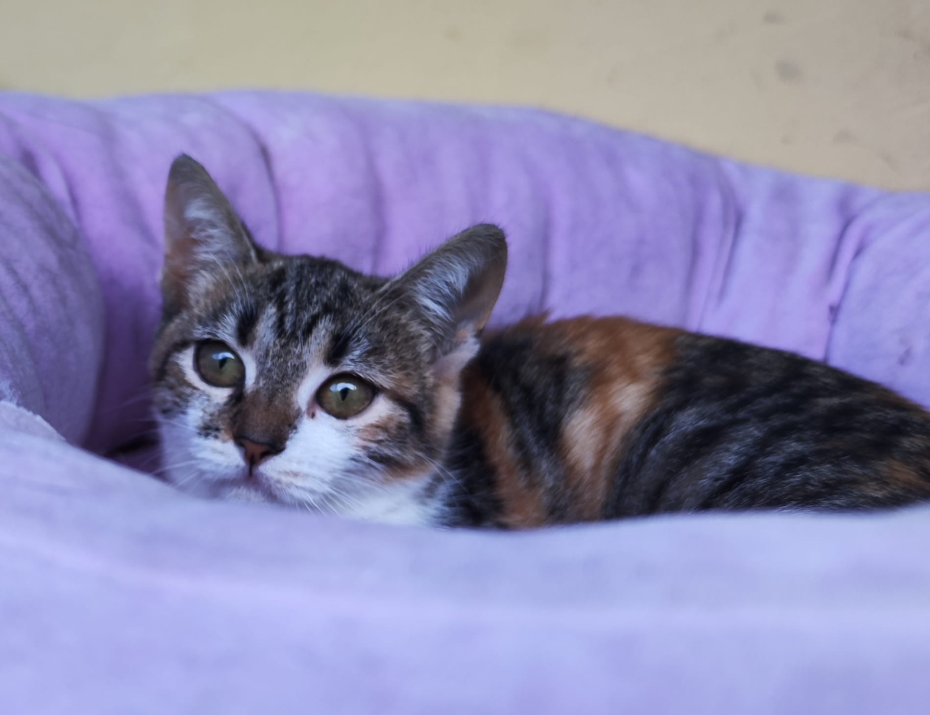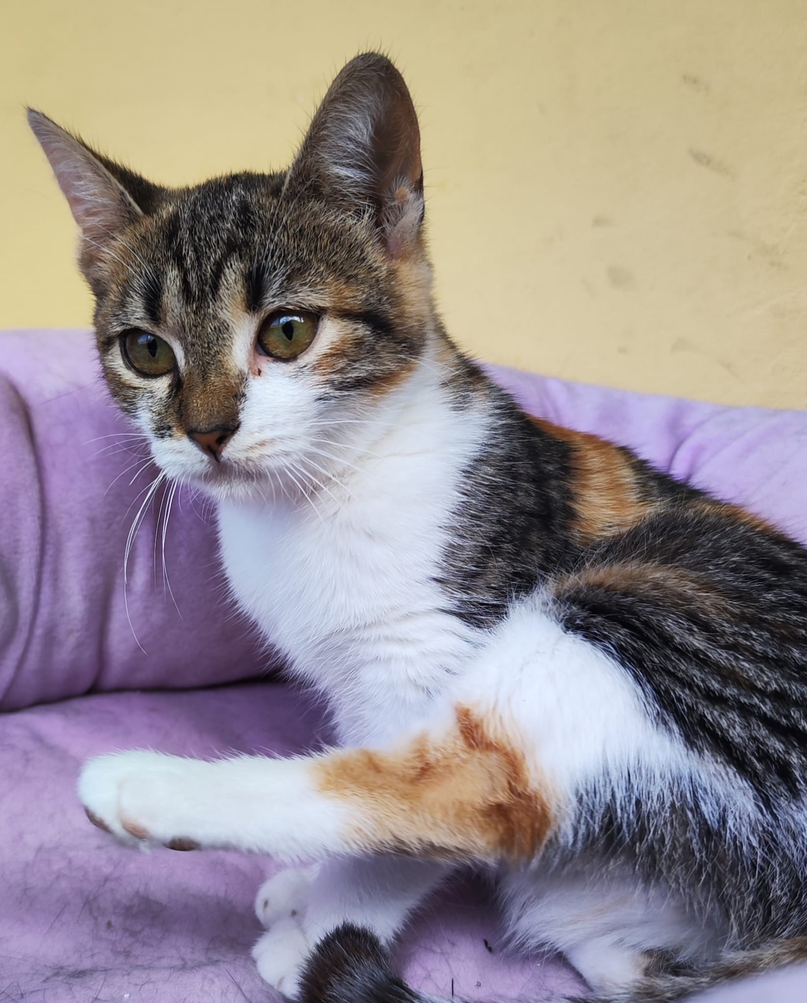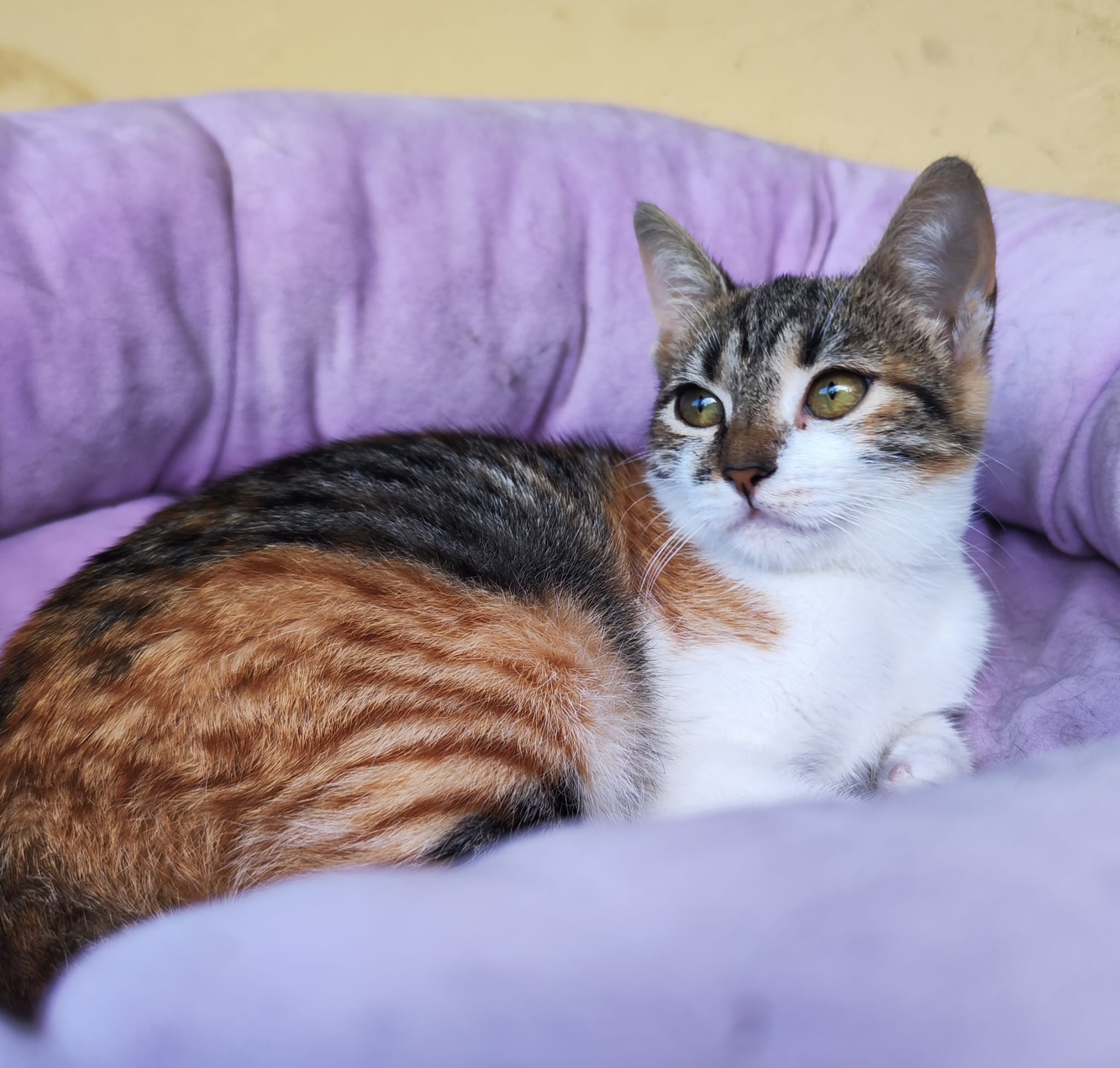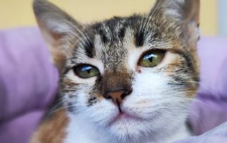 Hallo und miau, ich bin die kleine Bibi – eine wunderschöne Katze und warte auf mein Glück. Wie ich auf meine Pflegestelle gekommen bin? Als Kitten wurde ich mit einer Wunde auf der Straße von lieben Menschen gefunden und in Sicherheit gebracht. Nun lebe ich hier mit den anderen Samtpfoten und Hunden. Ich hab ein eher sanftes Gemüt und brauche in neuen Umgebungen erstmal Zeit, um mich so richtig einzugewöhnen. Auch sehr aktive und stürmische Katzen verunsichern mich. Deshalb suche ich für mein Forever Home einen kätzischen Artgenossen, der oder die auch etwas sanfter und ruhiger ist so wie ich. Wenn du noch keine Samtpfote bei dir wohnen hast, kann ich mit meinem Kumpel Ozzy bei dir einziehen.