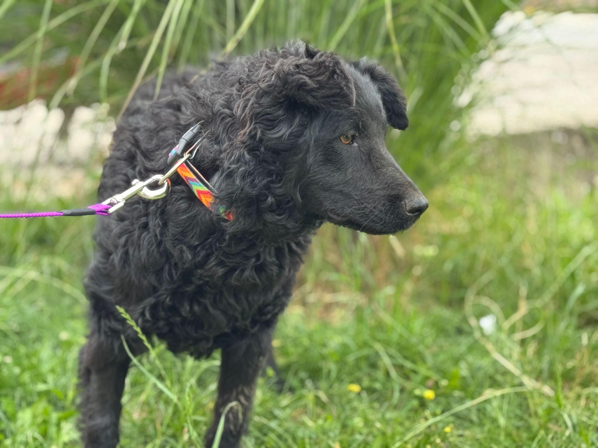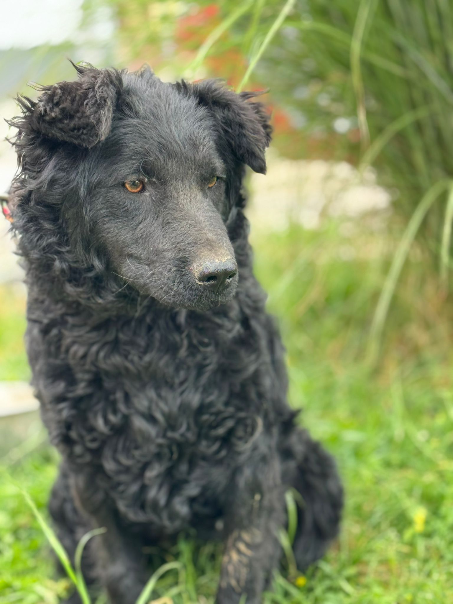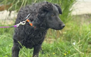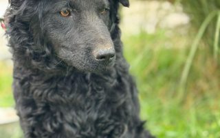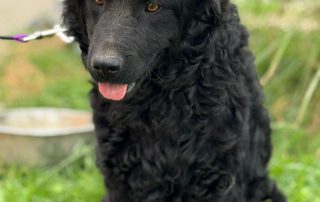 Curly ist eine junge, energiegeladene Hündin, die nicht nur durch ihr bezauberndes Aussehen auffällt. Ihr glänzendes, schwarzes Fell mit den charmanten Locken und ihr wacher Blick machen sie zu einem echten Hingucker. Sie erinnert stark an einen Kroatischen Schäferhund – klug, aktiv und voller Lebensfreude.