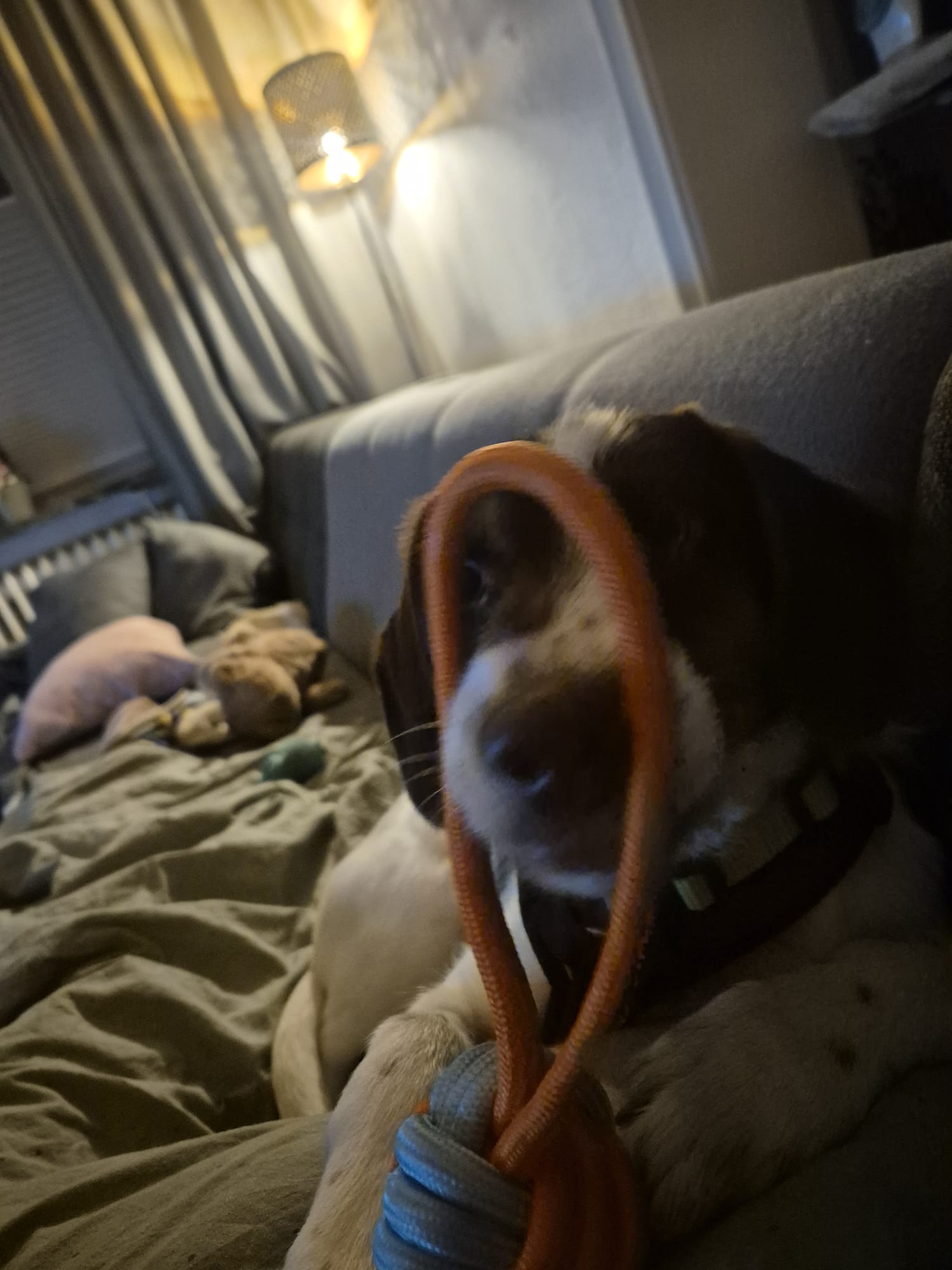 Ein Zuhause am Stadtrand oder in ländlicher Umgebung wäre ideal – dort, wo Wiesen, Felder oder Wald nicht weit entfernt sind. Eine soziale, spielfreudige Hundekumpelin oder ein Hundekumpel ist denkbar, eine sehr ruhige Ersthündin oder ein sehr ruhiger Ersthund, der keinen Kontakt möchte, eher nicht.