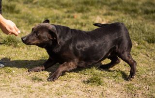 Grom ist der Sohn von Greta und lebt seit dem 15.06.2021 im Shelter. Geboren wurde er am 29.05.2021. Optisch erinnert er an einen Dackel-Typ, nur etwas größer – mit kurzen Beinen, kräftigem Körperbau und ganz viel Ausdruck im Gesicht. Vermutlich steckt in ihm ein Jagdhund-Mischling, was man an seiner lebendigen Art und seiner Aufmerksamkeit schnell merkt.