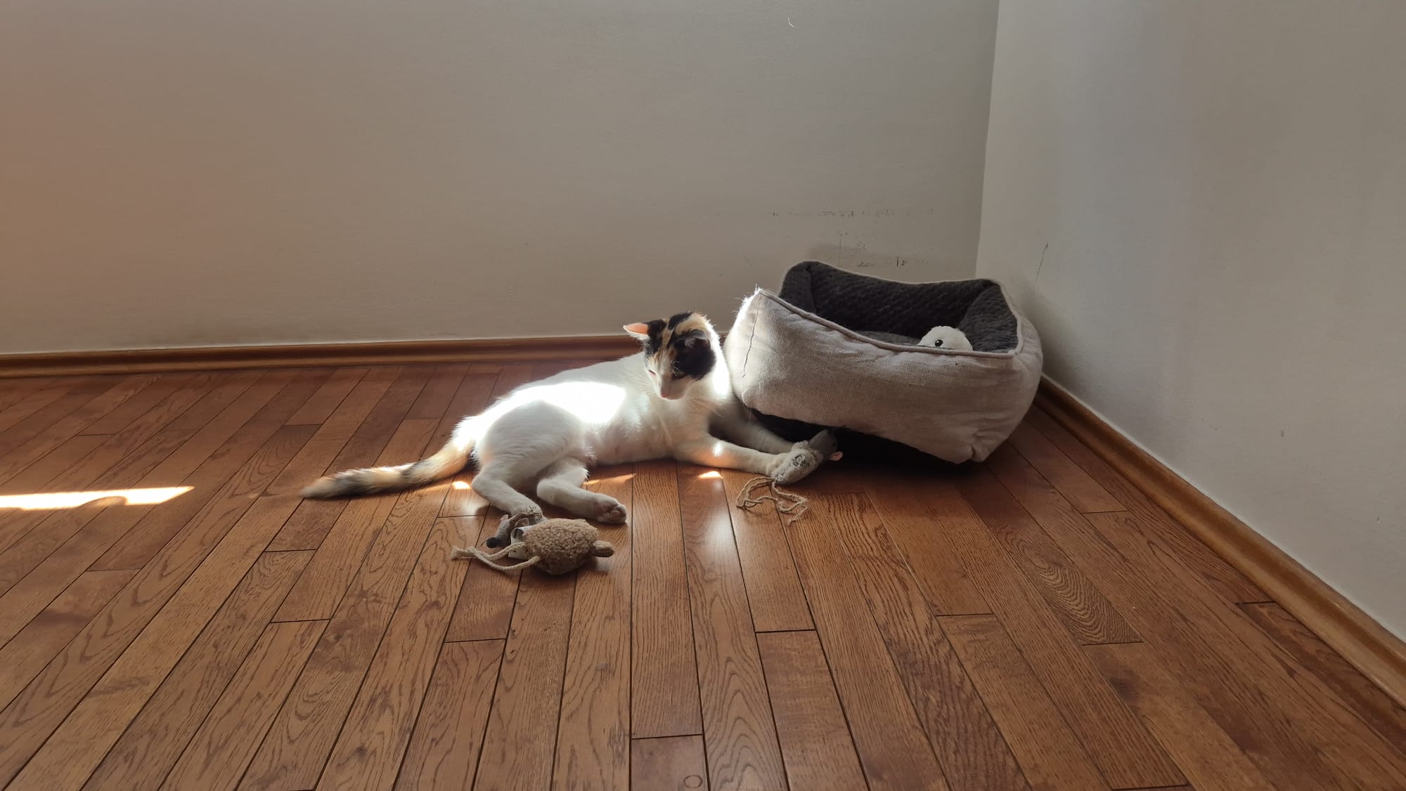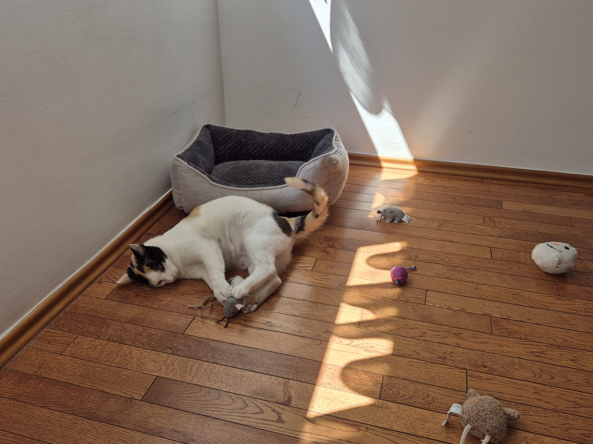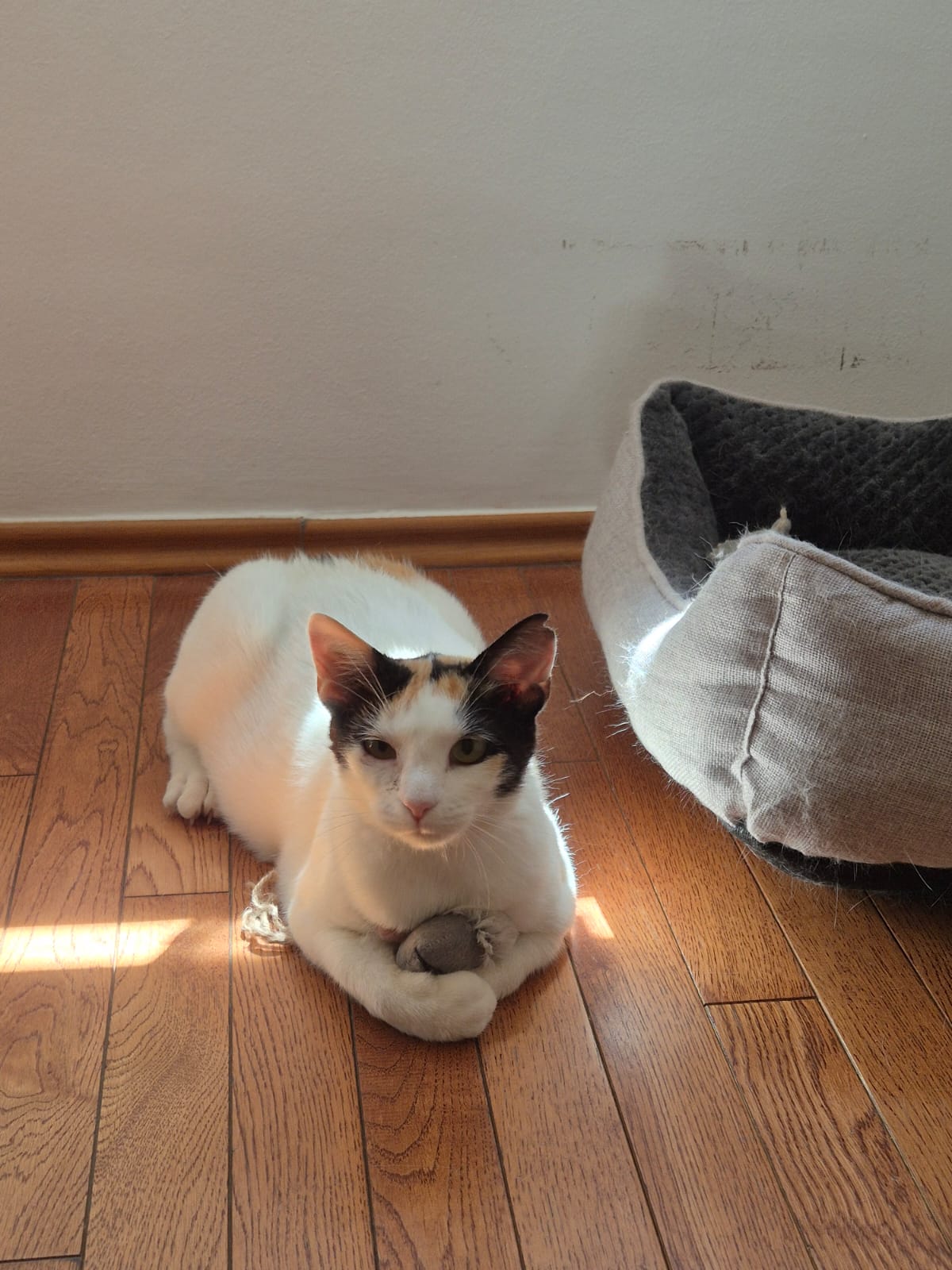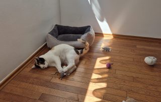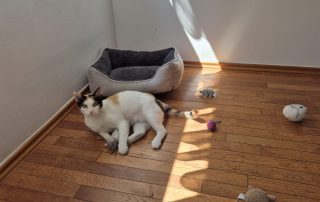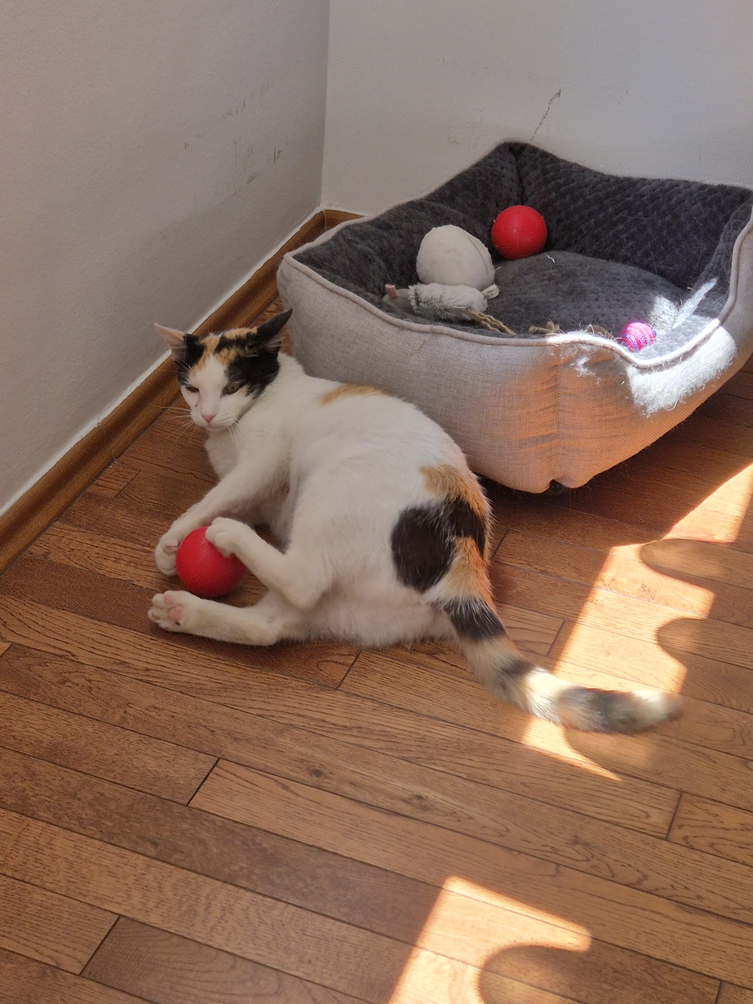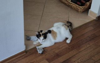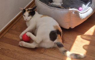 Ina ist eine sehr liebe, sanfte und verschmuste Katze, die sich schnell in ihrer Pflegestelle eingelebt hat. Sie liebt es, mit Spielzeug zu spielen, ausgiebig zu schlafen und sich ihr Bäuchlein mit leckerem Futter vollzuschlagen. Ihr Herz schlägt eindeutig für die Sicherheit und Ruhe eines echten Zuhauses – das Straßenleben interessiert sie kein bisschen mehr.