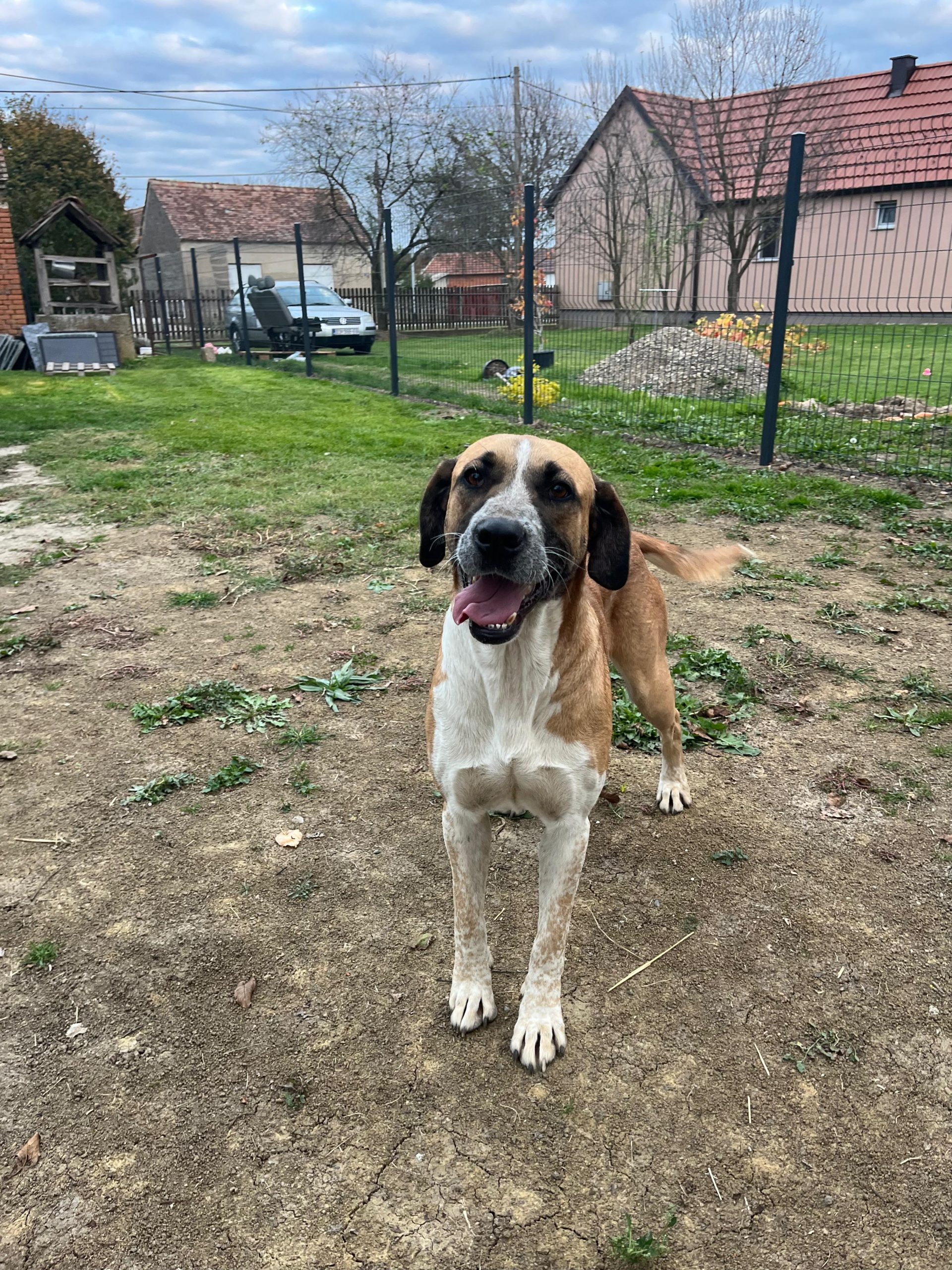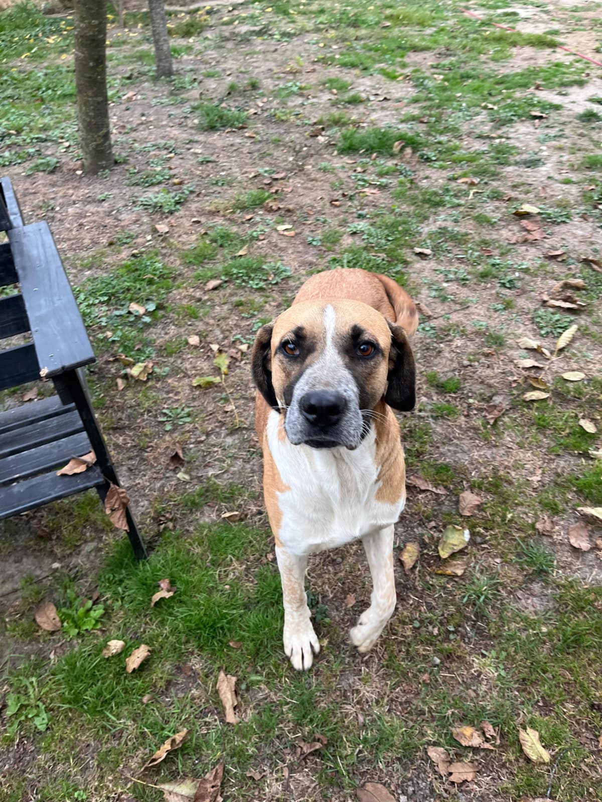 Kiara ist eine beeindruckende Erscheinung – groß, athletisch und zugleich von einer warmen, sanften Ausstrahlung. Ihr ausdrucksstarker Blick, die harmonische braun-weiße Zeichnung und ihre eleganten Linien lassen sofort vermuten: In ihr steckt sehr wahrscheinlich ein Jagdhund-Mischling. Und genau das spiegelt sich nicht nur in ihrer Optik, sondern auch in ihrem Wesen wider.
