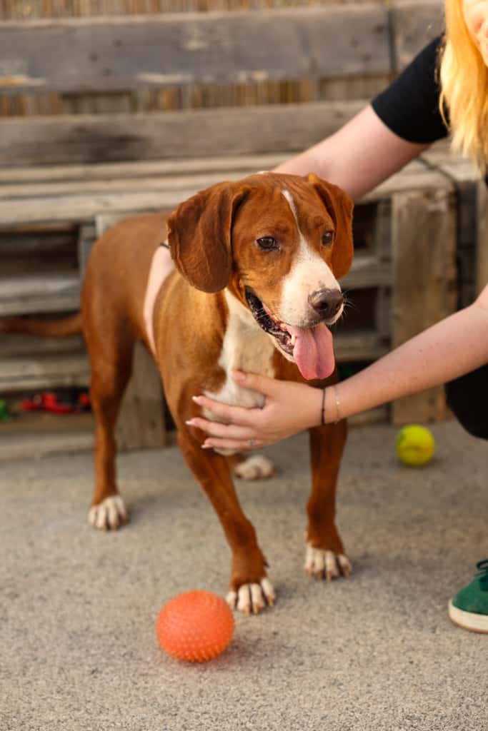 Optisch ist Loli ein echter Hingucker – rotbraunes, glänzendes Fell, weiße Abzeichen, lange Schlappohren, ein offenes Gesicht und ein Körper, der nach Bewegung ruft. Man sieht ihn und weiß sofort: Das ist kein Hund, der nur „Gassi geht“ – das ist einer, der mit dir unterwegs sein will. Einer, der Wege erkundet, Spuren liest, gern unterwegs ist und sein Herz an Menschen verschenkt, die ihn sehen, wie er ist: ein aktiver, loyaler Hund mit großem Verstand und noch größerem Herzen.