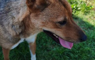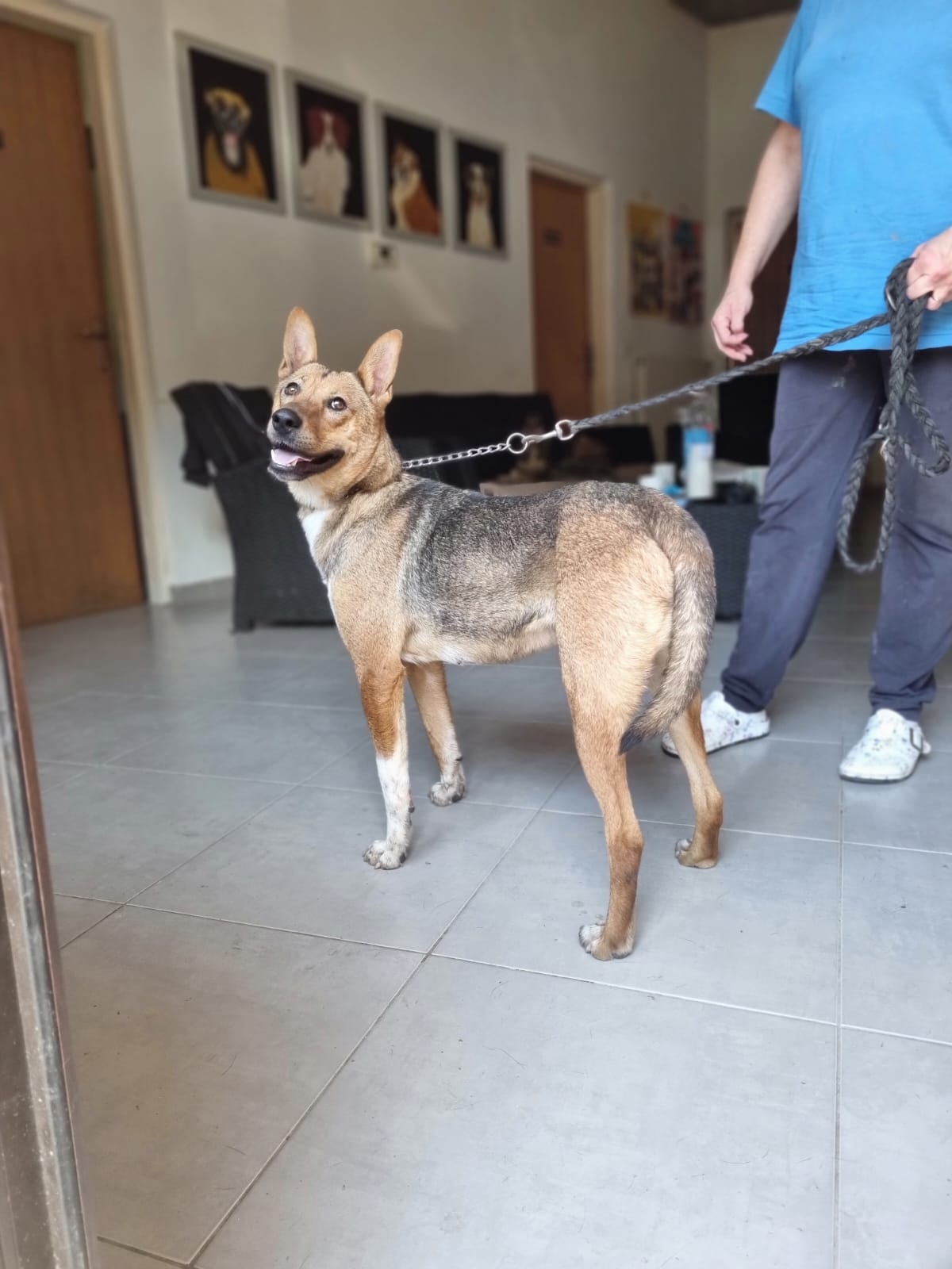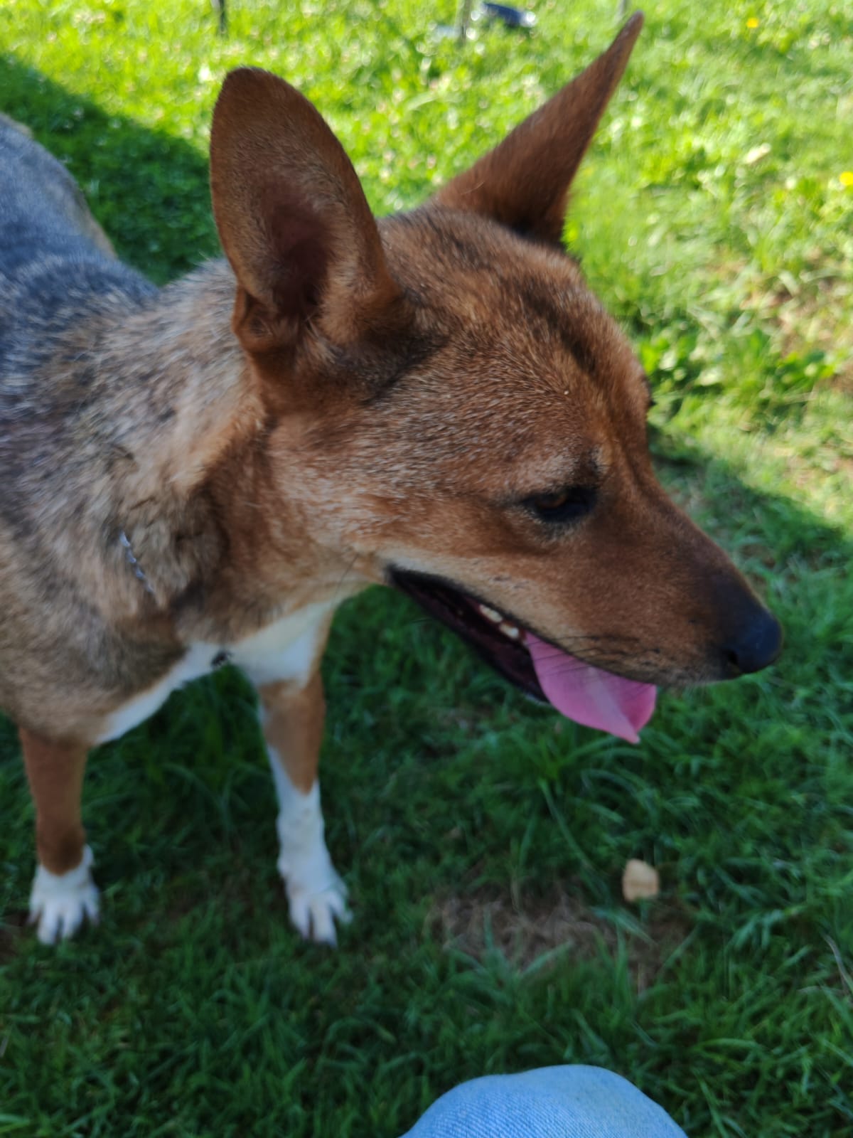 Unsere Lora ist eine etwa 2 Jahre junge Schäferhund-Mischlingshündin mit einem ganz besonderen Ausdruck. Mit ihrem kurzhaarigen, kräftigen Fell in warmen Braun- und Grautönen, den wachen, dunklen Augen und den spitzen Stehohren sieht sie nicht nur bildhübsch aus – sie bringt auch jede Menge Persönlichkeit mit.