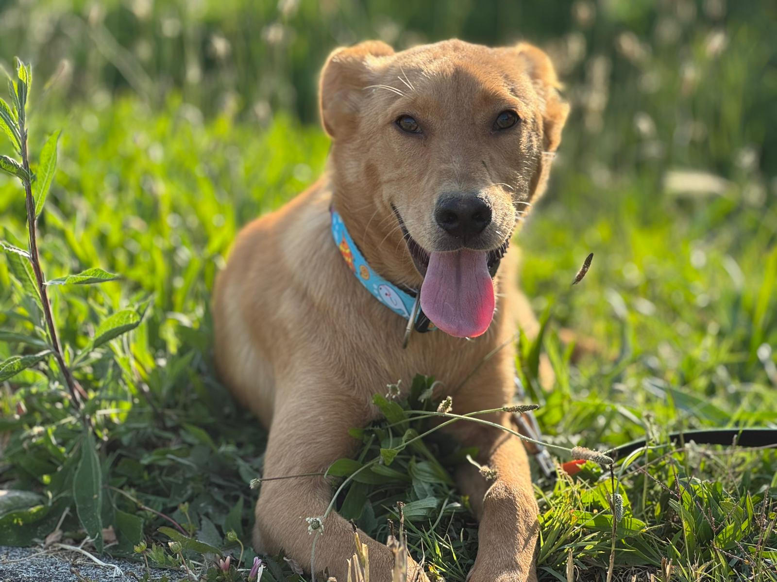 Marino ist ein junger, neugieriger Kerl, der aussieht, als würde er immer lächeln. Sein goldfarbenes Fell schimmert in der Sonne, und sein Blick sagt: „Ich will lernen, lieben und leben!“ ☀