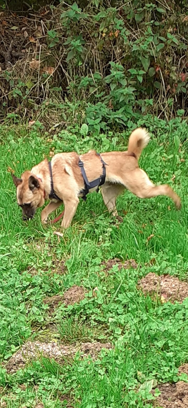 Er ist geboren am 26.05.2020, ein zarter, sensibler kleiner Schäferhund-Mix, der sich eng an seine Bezugsperson bindet, wenn er einmal verstanden hat, dass die Liebe bleibt. Dann kann er strahlen, dann genießt er Nähe und Berührung, dann ist er wieder der Hund, der er einmal war: hingebungsvoll, aufmerksam, feinfühlig.