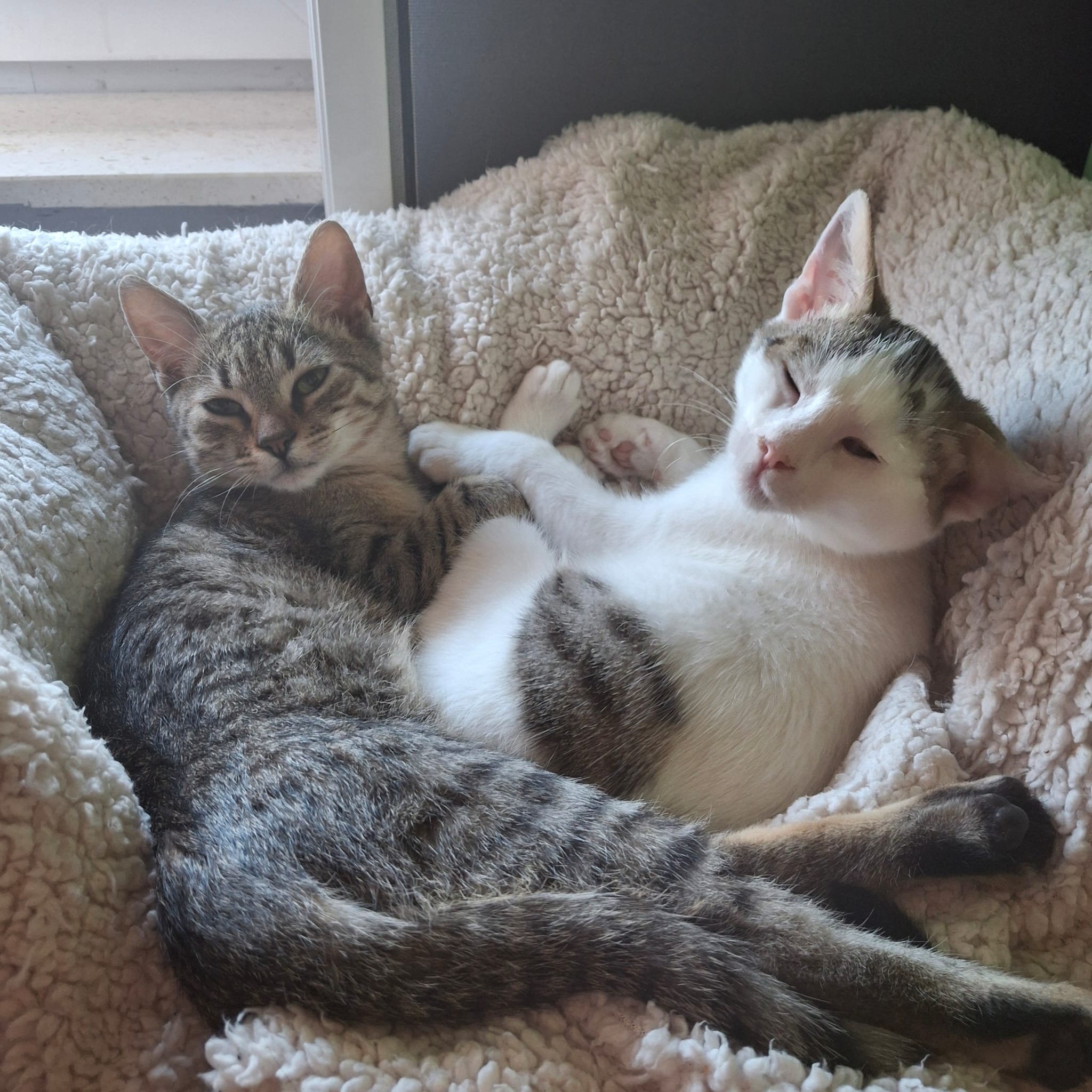Die beiden Brüder sind unzertrennlich: Sie spielen, schlafen und kuscheln zusammen. Deshalb suchen wir für sie ein Zuhause, das beide gemeinsam aufnimmt und ihnen die Liebe und Geborgenheit schenkt, die sie verdienen.