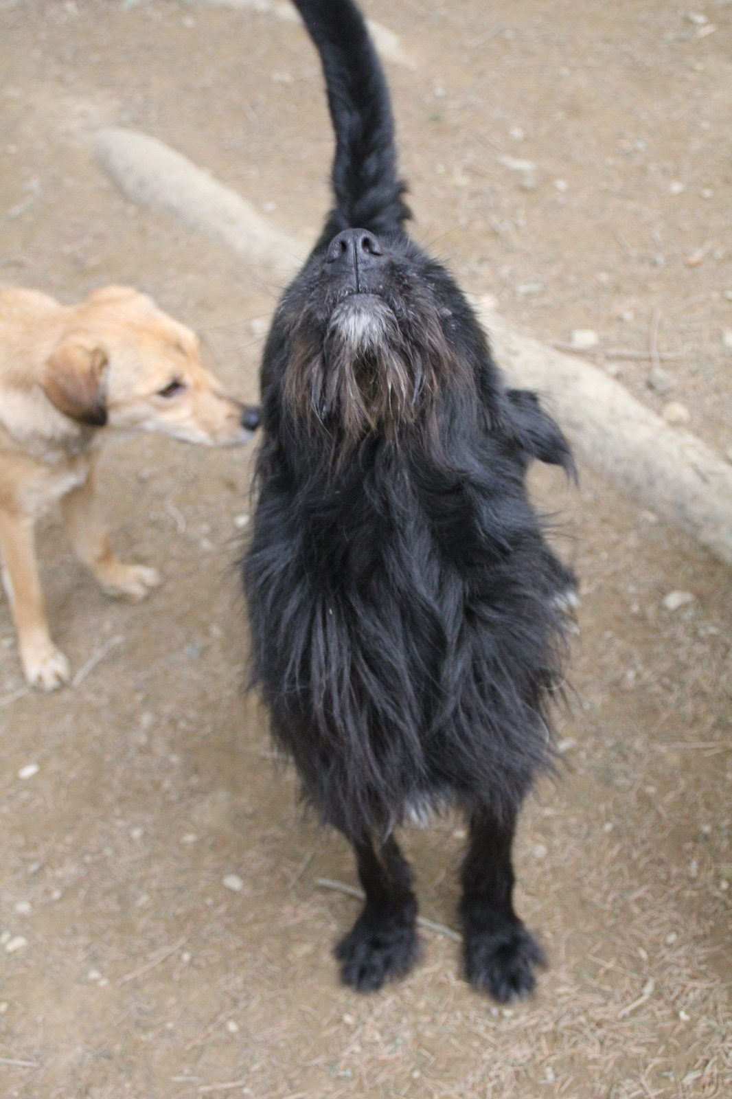 Heute steht da ein wunderschöner Hund mit außergewöhnlich ausdrucksstarken Augen, die direkt ins Herz schauen, und einem Kopf mit ganz eigener, besonderer Form – als hätte die Natur ihm ein individuelles Design geschenkt. Sein schwarzes, glänzendes Fell unterstreicht seine elegante Erscheinung, und obwohl er eher leise auftritt, hat er eine Präsenz, die man sofort spürt.