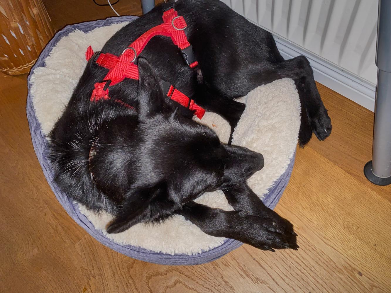 Rassetypisch bindet sich Pan extrem schnell an seine Menschen. Dies ist einerseits schön, andererseits muss man hier von Beginn an etwas gegenwirken, da er vor allem im Haus die Neigung zum „stalken“ hat. Ab und an muss man mal eine Tür hinter sich schliessen. Das gefällt ihm nicht, nach einiger Zeit legt er sich dann aber im Körbchen ab. Überhaupt muss man ihn immer mal wieder runterfahren, damit er zur Ruhe kommt.