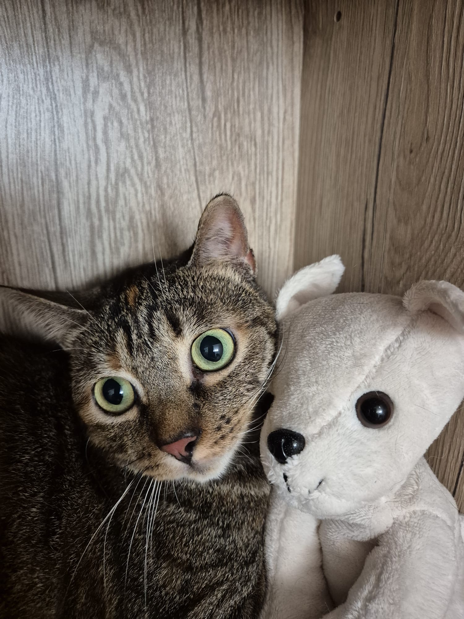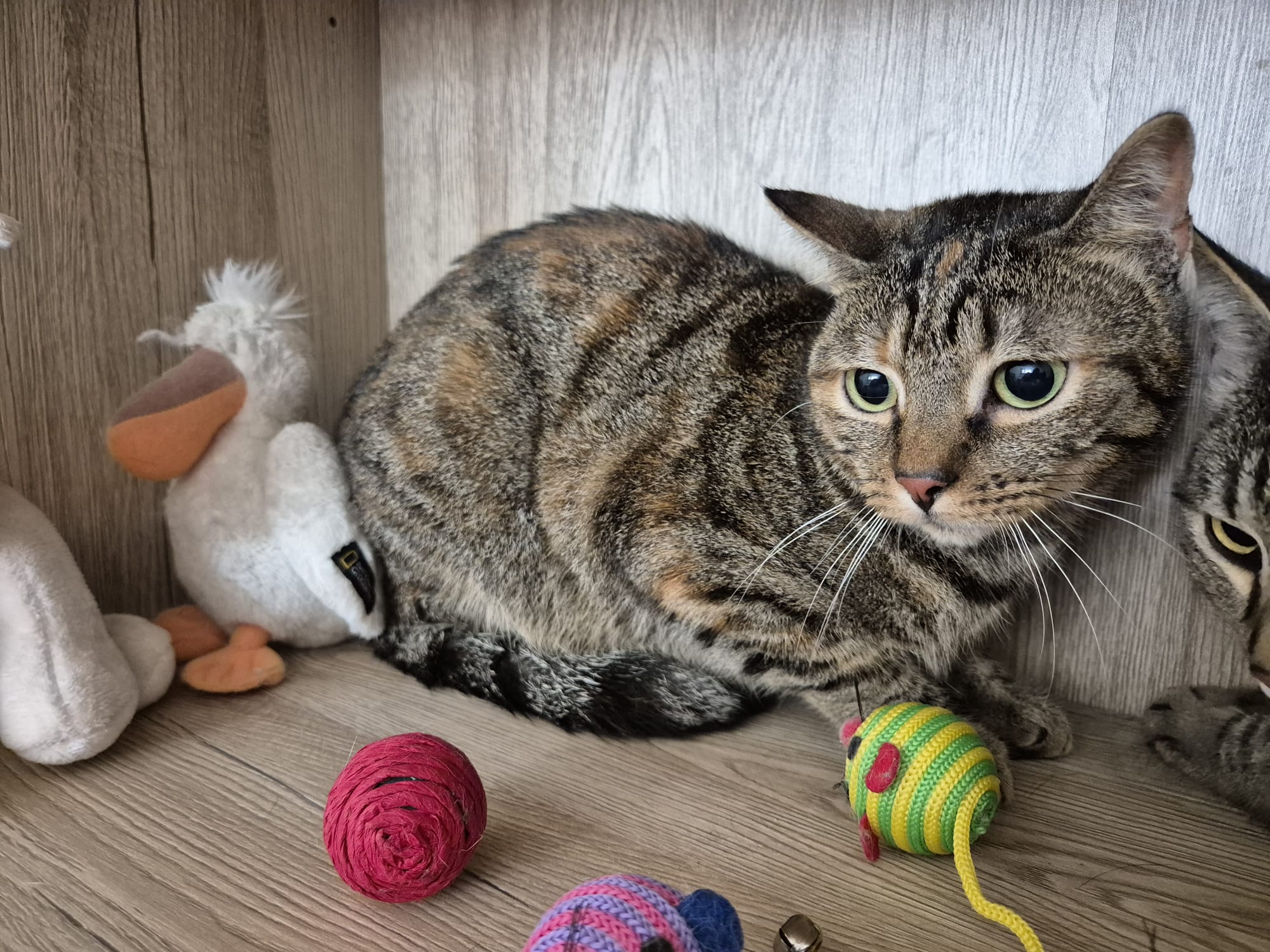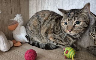 Wie man auf den Fotos schon erahnen kann, ist Pika eine ängstliche und sensible Katze. Am liebsten würde sie sich nur manchmal und besonders in neuen Situationen gaaaanz weit unterm Bett verkriechen, wenn sie mal wieder so doll verängstigt ist. Bemerkt sie aber, dass es alle gut mit ihr meinen, dann macht sie auch Fortschritte. Für Pika wünschen wir uns deswegen verständnisvolle und einfühlsame Zweibeiner, die ihr Zeit geben, um Vertrauen zu fassen. Oft erleben wir es, dass Katzen in ihrem neuen Zuhause mit weniger Katzen und mehr Aufmerksamkeit toll aufblühen – aber jede*r eben im eigenem Tempo.