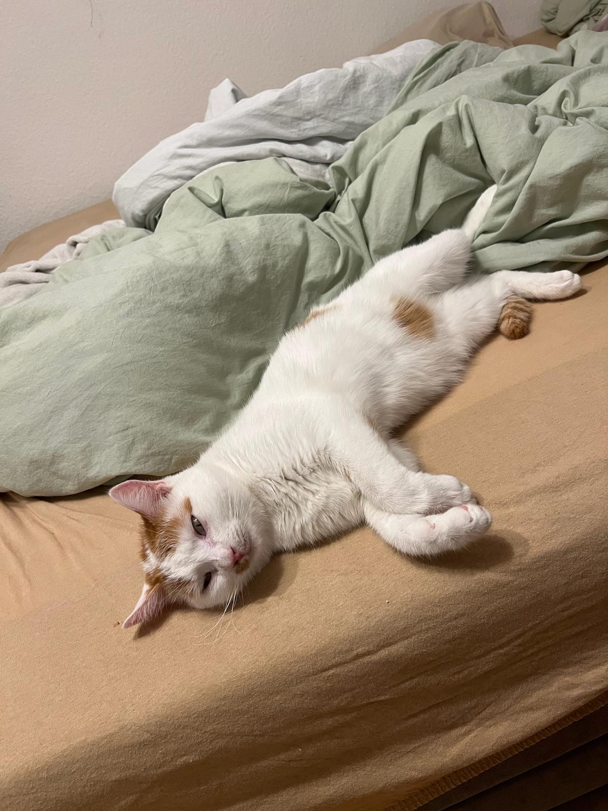 Der hübsche Kater ist nicht nur verträglich mit anderen Katzen, sondern auch ein echter Schmusekater, der seine Menschen sehr liebt und ihre Nähe sucht. Am liebsten möchte er im Arm gehalten werden und schläft auch sehr gerne so.