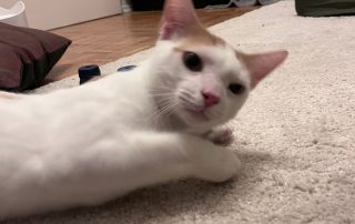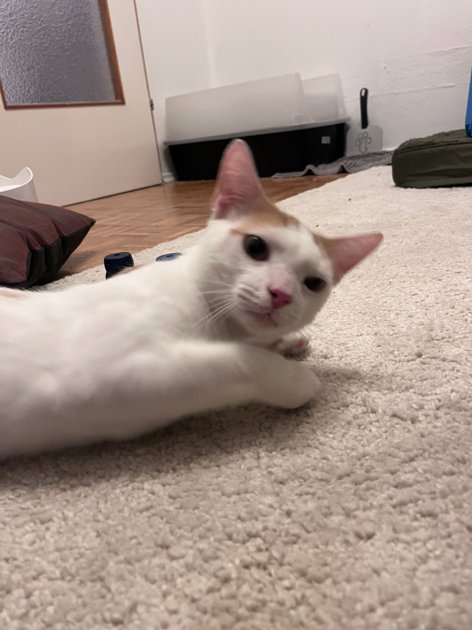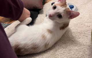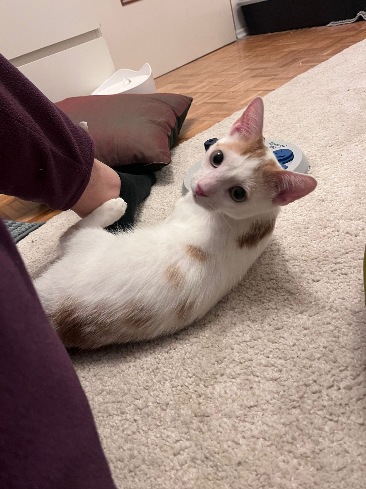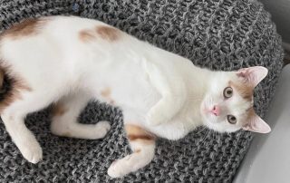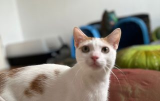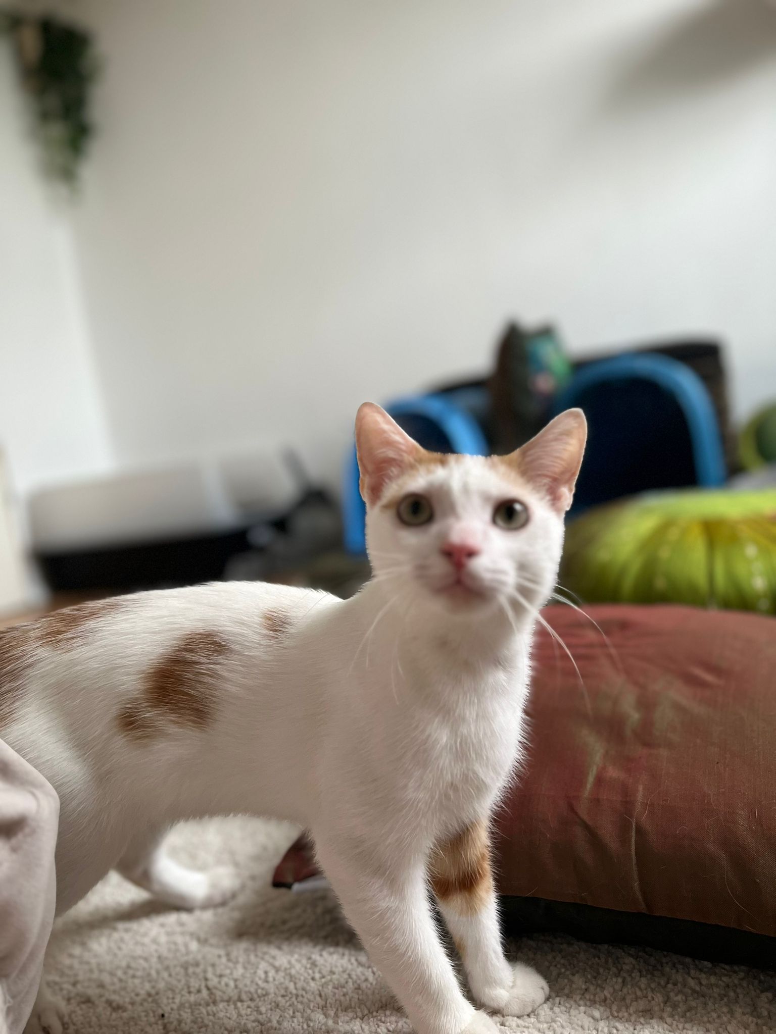 Der rot-weiß-getigerte Kater wünscht sich ein Zuhause mit einem Artgenossen. Sollte bei dir noch keine Katze wohnen, kann Roko auch jemanden aus seinem Zuhause mitbringen.