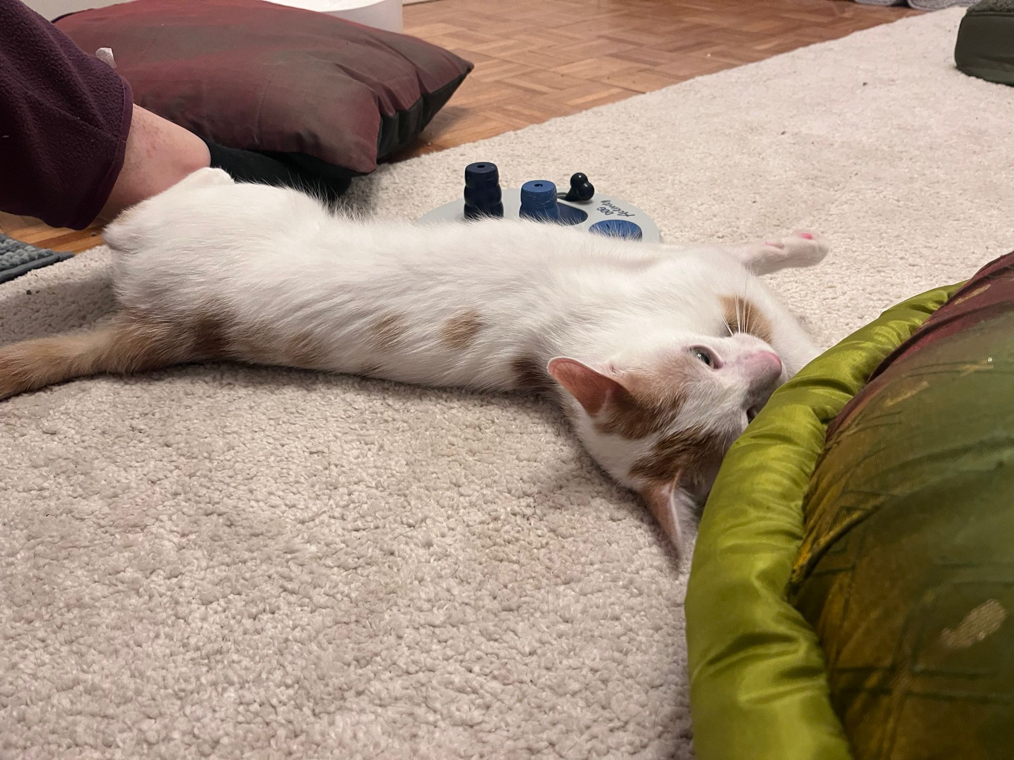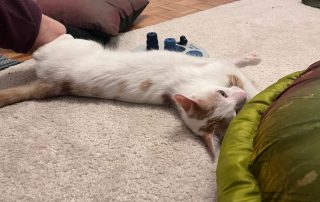 Roko ist mittlerweile zu einem nicht mehr ganz so winzigen Kater herangewachsen und wartet nun auf seine Familie. Er genießt das Leben in einer Wohnung mit mehreren Spielekumpels sehr. Spielen und Toben? Ja bitte!