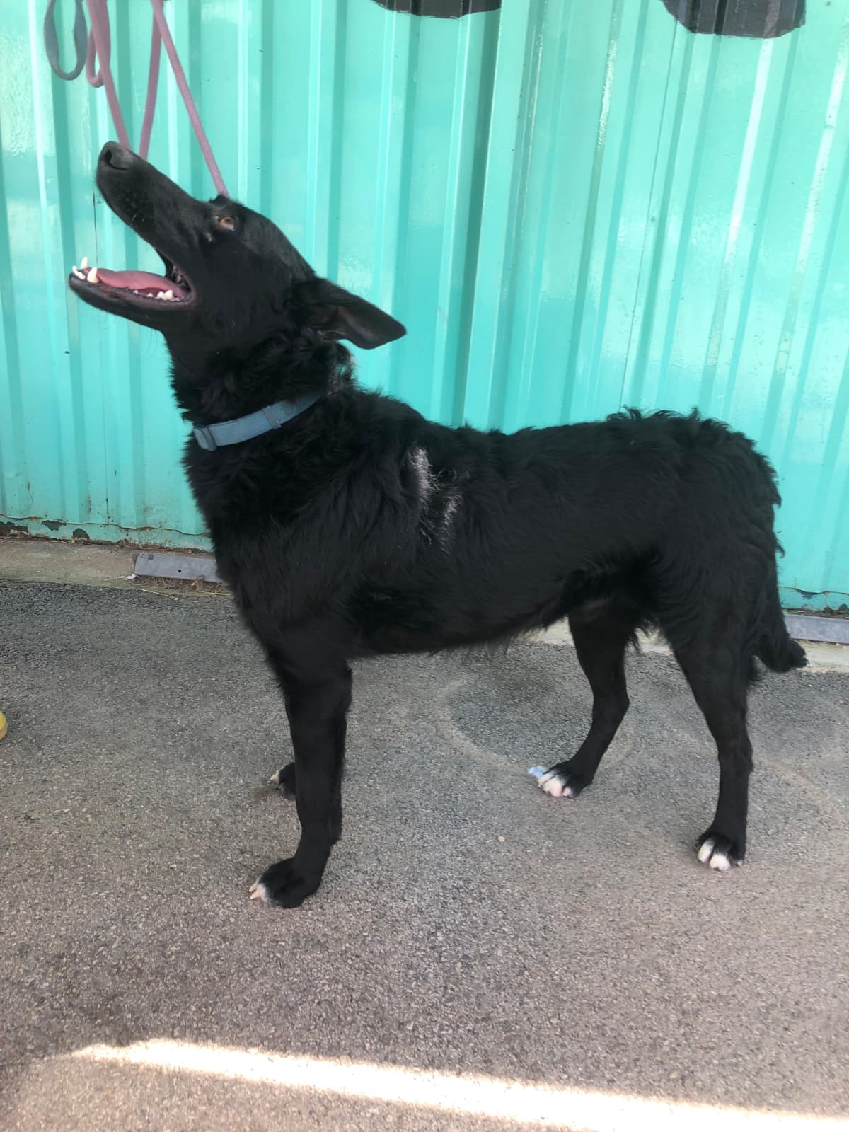 Romul ist ein sanfter, lieber Hund mit einem neugierigen Blick und wachsamen Augen, die immer auf der Suche nach neuen Abenteuern sind. Sein glattes, schwarzes Fell glänzt in der Sonne, und seine aufgestellten Ohren verraten: Hier steckt ein kleiner Entdecker voller Lebensfreude!