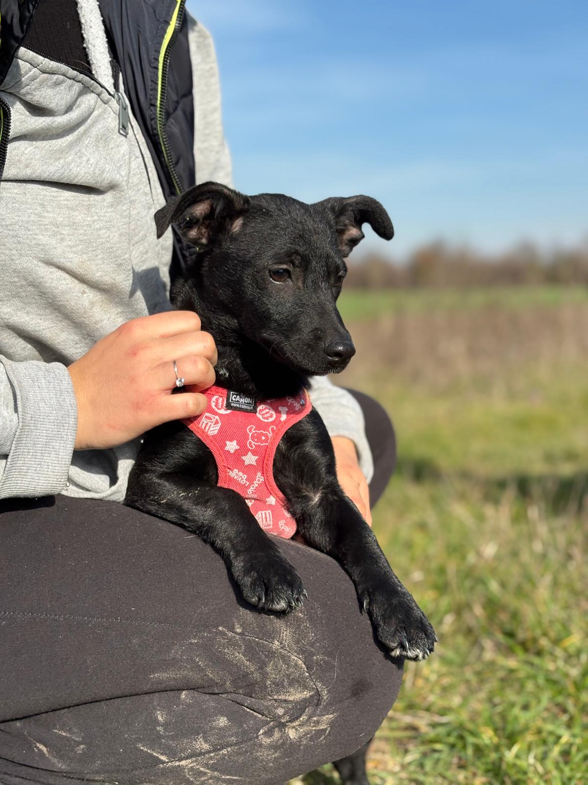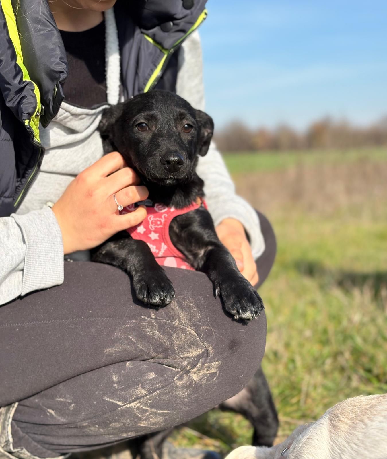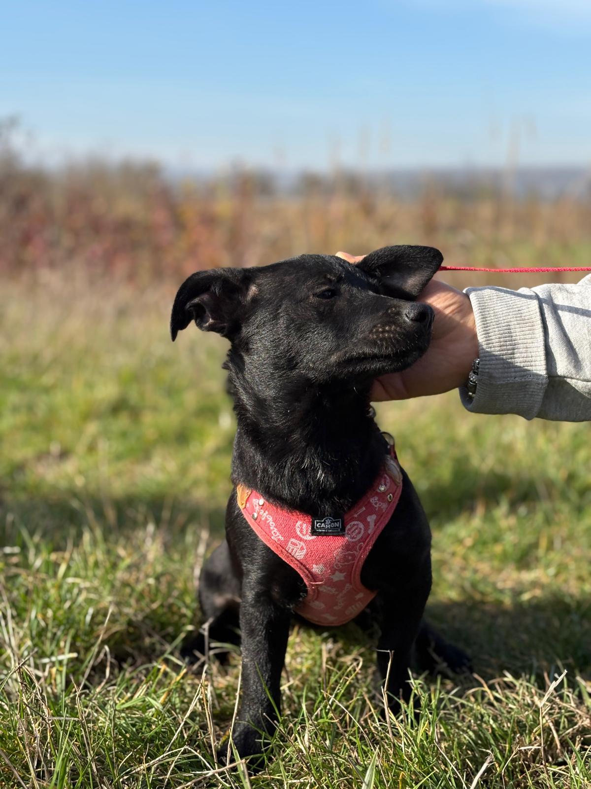 Das ist Srna, eine kleine schwarze Zaubermaus, geboren ca. Juni 2025, zierlich wie ein Reh (ihr Name passt also perfekt!) und mutig wie eine ganz Große.